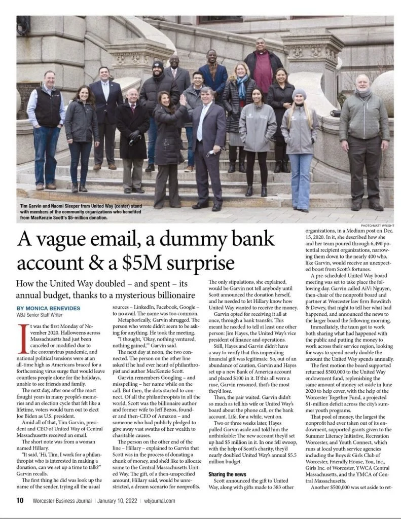 How the United Way of Central Massachusetts Doubled - and spent - its annual budget, thanks to a mysterious billionaire.